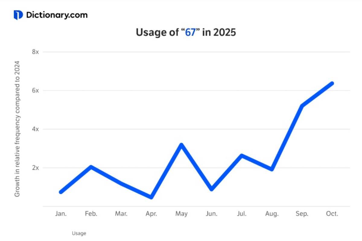 ¿La razón? El informe sobre la palabra del año dio como resultado que las búsquedas del número 67 experimentaron un gran crecimiento desde verano de 2025.