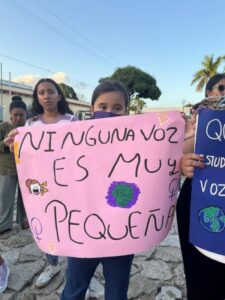 Luego, Dalia Fuega ofreció un conversatorio sobre el ciclo menstrual y después comenzó la protesta en la Avenida 7 esquina Calle 30 con infancias al frente. “Ya es momento de que Bacalar tenga sus propias marchas, tenga su propia colectiva para que las mujeres de Bacalar sepan que habemos mujeres que estamos dispuestas a ayudarlas, que no están solas”, pronunció Vargas antes de comenzar.