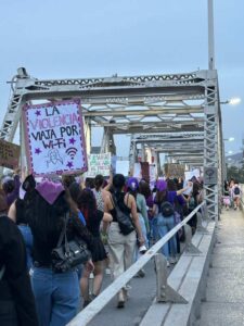 Entre las asistentes, las amigas de Karla Daniela Perales Lomas siguen buscando justicia a tres años de su feminicidio. “Su esposo la asesinó hace tres años, y yo lucho por ella porque el desgraciado se fue. Huyó y nadie ha podido encontrarlo”, denuncian.
