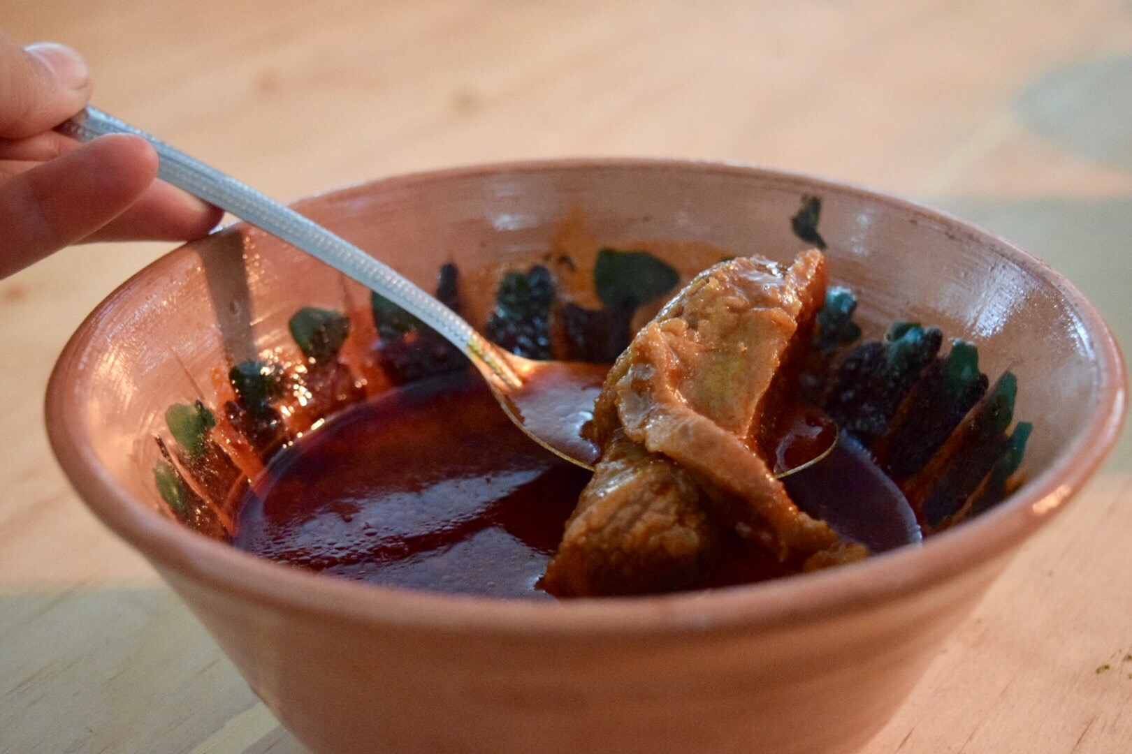Un ejemplo es el chilecaldo, una sopa preparada con carne de res, de puerco, calabaza tamala, un trozo de elote (como lo comemos en el mole de olla) y chile chilhuacle, un plato ligeramente dulce y, al mismo tiempo, un poco picoso.
