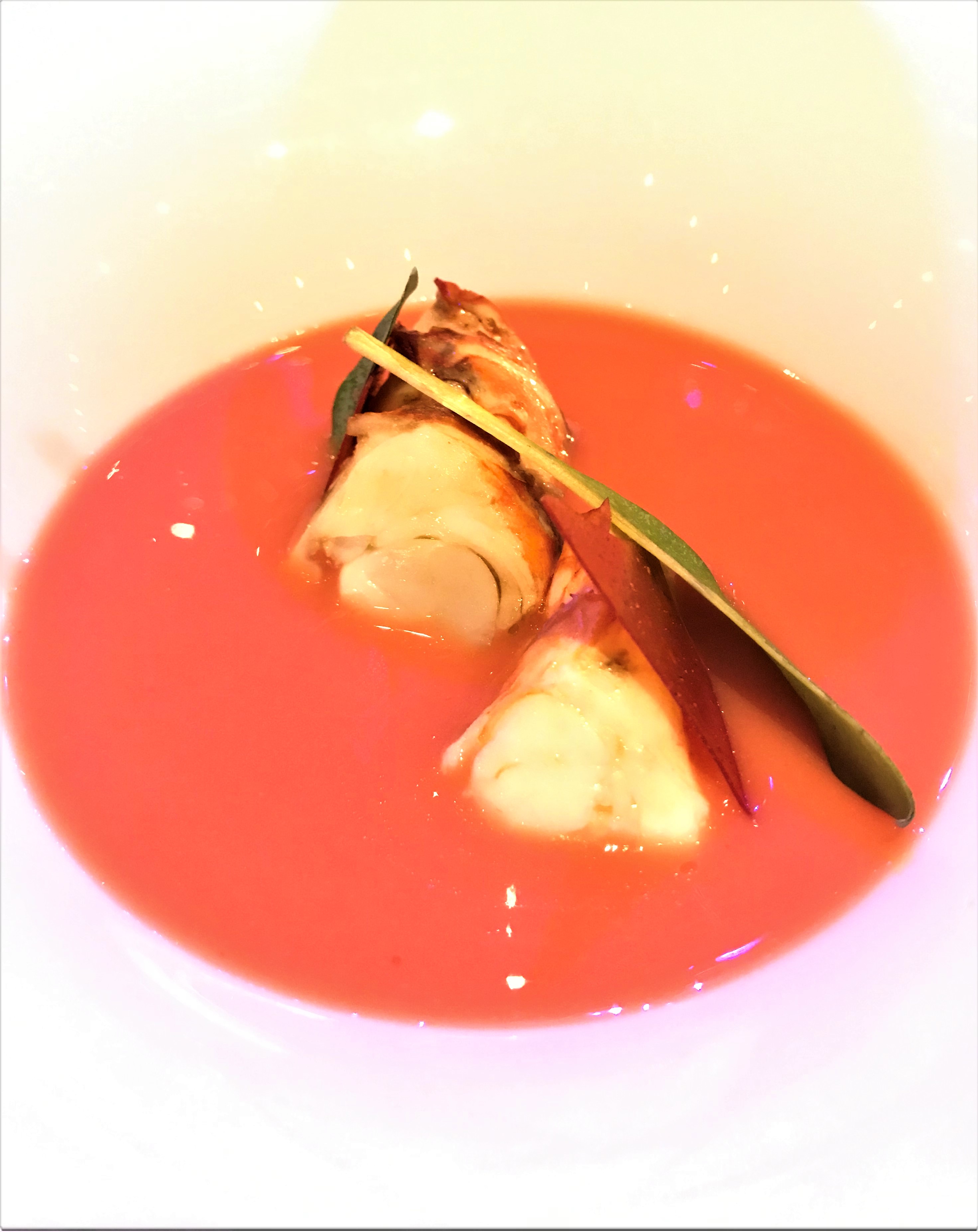 Kisko García, chef del restaurante Choco en Córdoba con una estrella Michelín, continuó con una tradición bien española: gazpacho, que aventuró con cigalas.