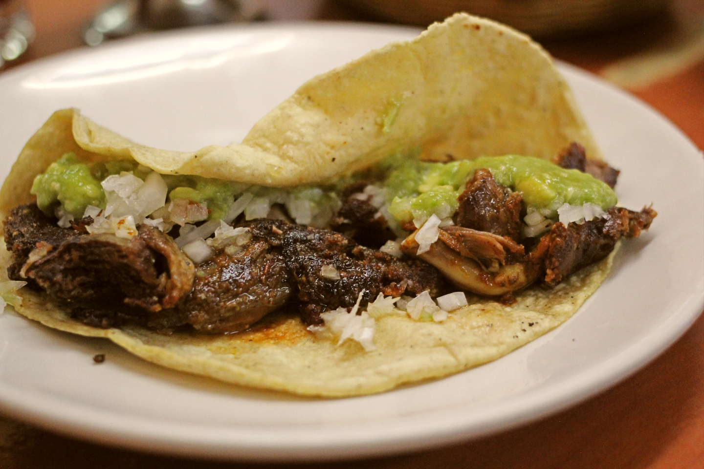 Va en tortillas enormes, recién hechas a mano, con mucho guacamole ligeramente picoso y preparado con aguacatito jalisciense, (otra de las delicias emblemáticas de este lugar), unas gotitas de adobo de birria y con el consomé por separado.