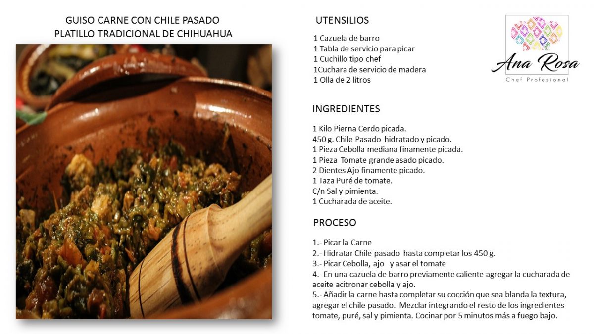 Ana Rosa nos comparte su receta de carne con chile pasado uno de los platillos tradicionales en Chihuahua y por supuesto en la Sierra Tarahumara.