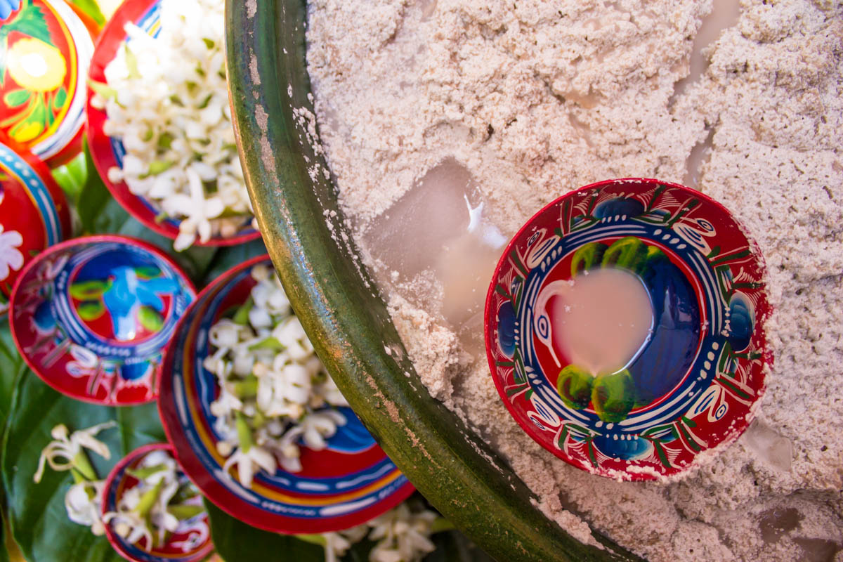Esta maravillosa bebida tiene como ingredientes al maíz, el cacao blanco, el mamey, rosita de cacao, ceniza y azúcar. El método de preparación se llama nicuanextle o nicuanestle, es todo un ritual utilizado en los estados de Oaxaca y Michoacán para remojar el maíz en agua y en ceniza del fogón. Una vez que el cacao está tostado pasa por un molino junto a las rositas de caco y la semilla de mamey, se mezclan todos los ingredientes a mano en una olla de barro y finalmente se endulza.