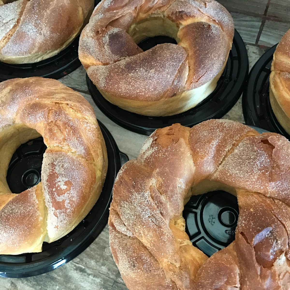 La leyenda cuenta que el pan de pichón se llama así porque cuando el panadero lo estaba preparando un pichón recién nacido cayó cerca de la mesa de trabajo. Verdad o no, lo cierto es que este pan no lleva ningún relleno de pollo.