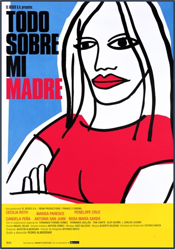 Todo sobre mi madre (España-Francia, 1999) es una película escrita y dirigida por Pedro Almodóvar con la participación de un extraordinario elenco de mujeres: Cecilia Roth, Candela Peña, Antonia San Juan, Penélope Cruz, Marisa Paredes y Rosa María Sardá.