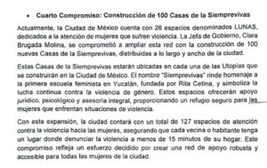 Por ejemplo, a un año y cuatro meses del anuncio, operan solo 27 casas de las Siemprevivas y no se han construido adicionales. Sin embargo, el 7 de marzo de 2026, la jefa de gobierno volvió a prometer la construcción de esas 100 casas de Siemprevivas para dar orientación y acompañamiento a las mujeres en la Ciudad de México.