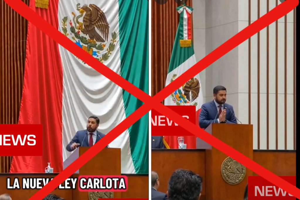 En el video con desinformación aparece un presunto legislador anunciando que la “Ley Carlota” fue aprobada y está vigente desde el 7 de abril. Supuestamente, la reforma estipula que las personas dueñas de inmuebles que hayan sido invadidos podrán sacar a las personas que los ocupen y quedarse con sus pertenencias.