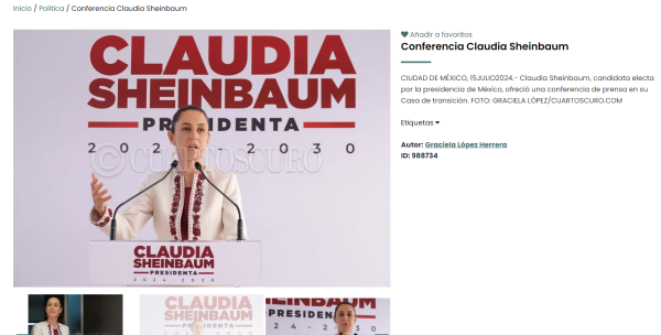 Además de que la vestimenta de la funcionaria en los videos desinformantes coincide con la transmisión de la conferencia y las fotografías publicadas por la agencia Cuartoscuro ese mismo día.