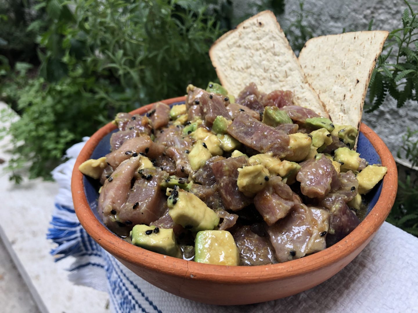 Corta en cubos dos lomos de atún y medio aguacate. Marina con dos cucharadas de salsa de soya, el jugo y la piel de dos limones, una cucharadita de jengibre fresco rallado y termina con ajonjolí tostado.